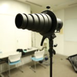 ①ストロボにスヌート・グリッド・リフレクターをつける