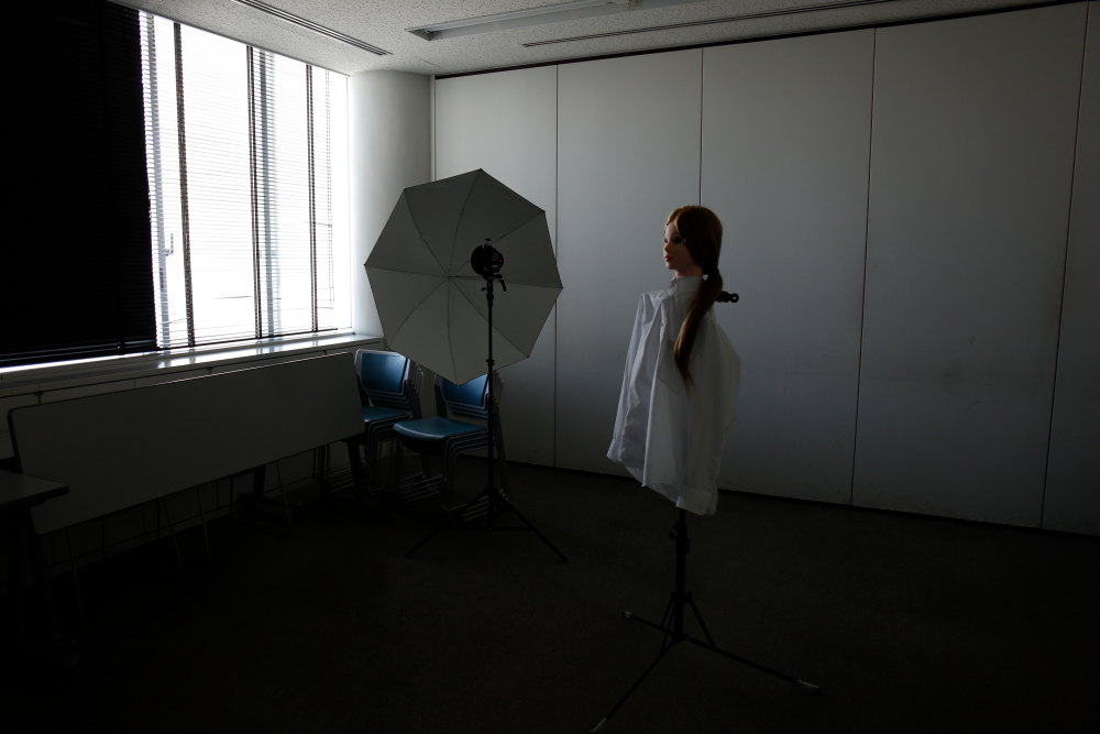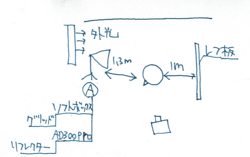 ●最初はアンブレラでやってみたけど背景への光の拡散具合が気に入らなかったので、ソフトボックス(グリッドつき)に切り替えた