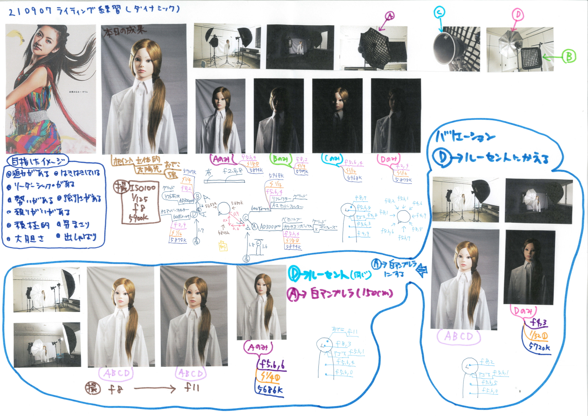 今回はライティングで印象をコントロールできるように実践的にライティング研究をします。